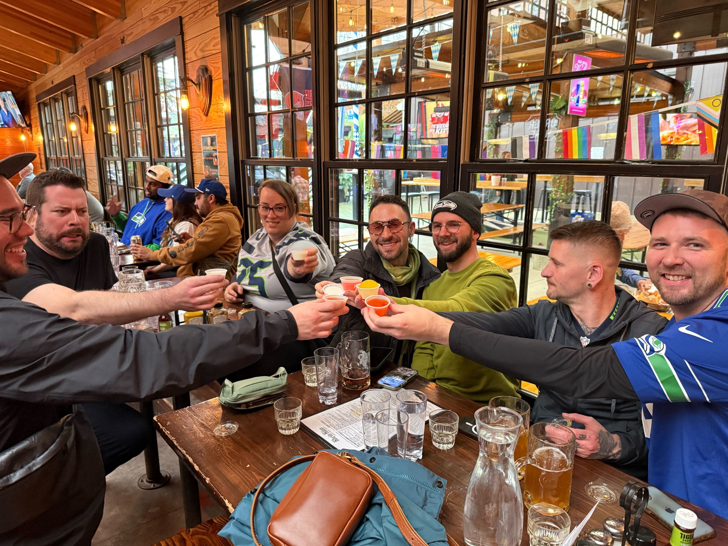 3:30pm to 7pmGame day ready! $4 blue & green Jell‑O shots, halftime + post‑game raffles, and 15% off your tab when you wear your hawks jersey. Big screens everywhere (sound on), plus a giant projector on the bocce courts with additional seating. Wings, burgers, brats, beer—it’s all happening here. Walk‑in only, so come early. We’re looking forward to a packed Haus! Doors at noon.